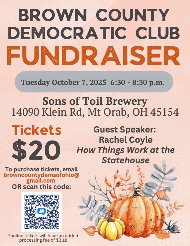 We're excited to welcome Kathleen Clyde, Chairwoman of the Ohio Democratic Party, to Brown County! This is a chance to hear directly from Kathleen about her vision and strategy for how Democrats can win up and down the ballot in Ohio, from protecting our values in rural counties, to building the momentum we need statewide to elect more Democrats in 2026 and beyond.